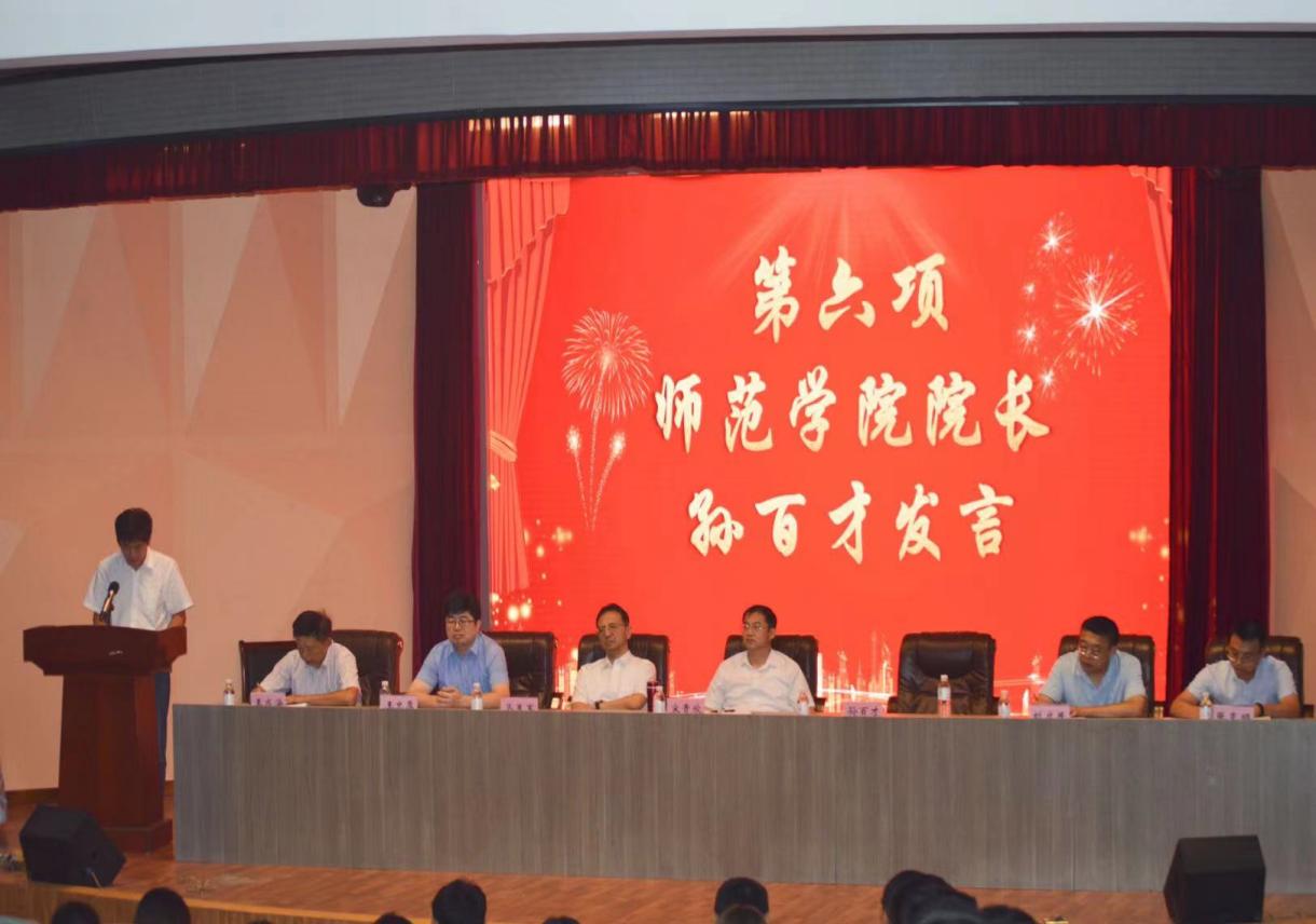 孙百才详细介绍了师范学院的历史和发展趋势。他重点就大学四年“学什么”和“怎么学”的问题进行了论述。“学”就要学解决问题的能力和批判性思维,教师与学生之间要相互成就。同学们在大学生活中要实现从受教育者到学习者的转变,保持初心和兴趣,在学习中以苦为乐,及时反思。他还强调要学会做人,志存高远,奋力实现教育的最高目标——做最好的自己。