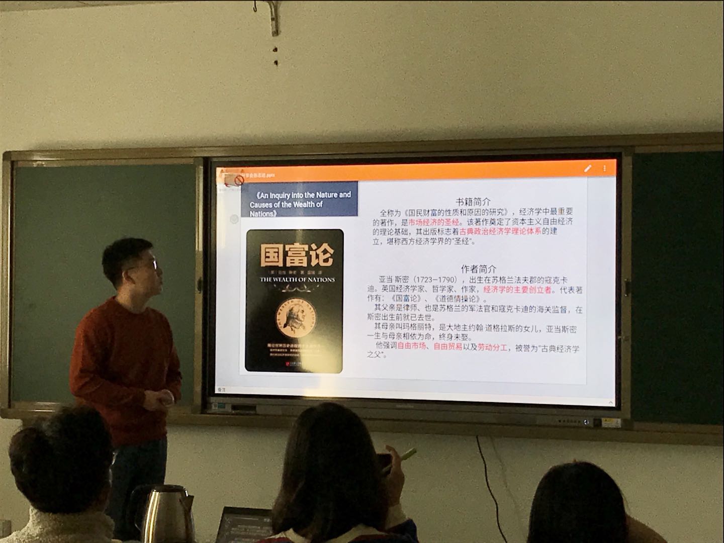 最后,黄庆丽结合《国富论》从经济学角度对当前的教育热点话题进行阐释;李雪辉老师从人才培养的角度向同学们分享了中国大学划分专业的起源与历史、未来学校应该培养什么人的心得体会,与《国富论》中的分工问题进行了学术对话。