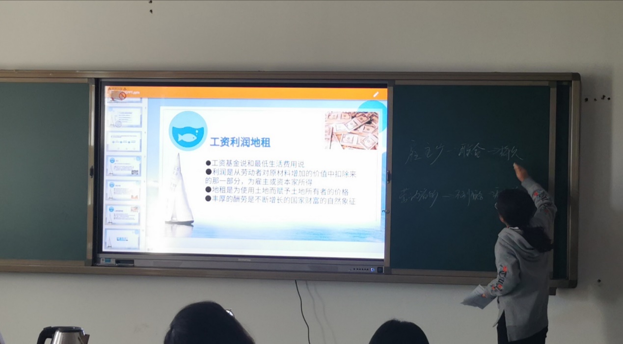 孙浩原同学从《国富论》中不同国家财富的自然发展情况入手,揭示了进步社会的资本流向的原因与进程。他分析了罗马帝国崩溃后的农业所受到的阻抑以及古代欧洲的经济政策体系,指明了书中所强调的都市的勃兴与进步又反作用于农村改良的重要观点。高艺耀同学着重对国家的支出与收入的章节做了解读。她一一讲解了税收原则的完备性、兼容性以及公债形成的原因,引发同学们的热烈讨论。