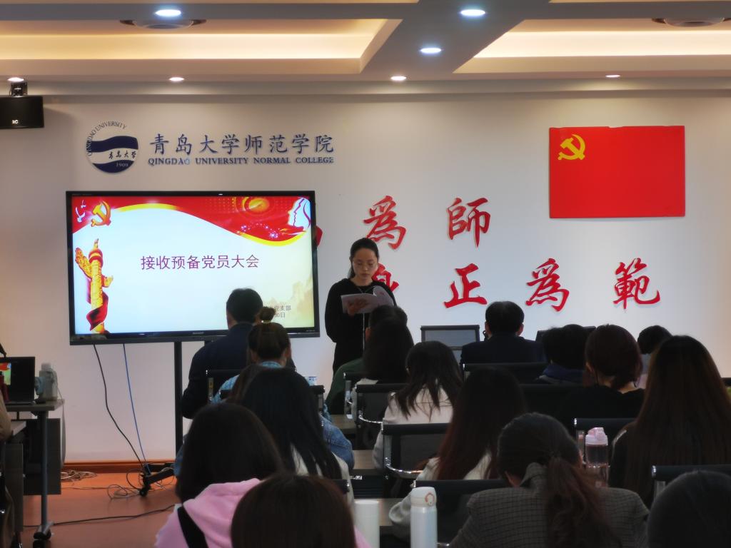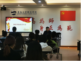 10月30日中午,师范学院学生党支部在德润楼201会议室召开师范学院发展新党员大会。学院党委副书记王成海、校党委组织员徐炜光、全体党员和党员发展对象参加本次活动。会议由学生党支部书记赵炜主持。