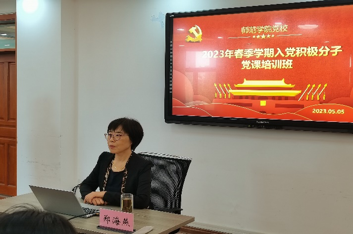5月5日下午,师范学院党校于德润楼201会议室开展2023年春季学期入党积极分子党课培训班第一讲。本次培训,特邀青岛市军休老年大学郑海燕教授作为主讲嘉宾,师范学院本科生第一党支部书记张宁、研究生党支部书记潘婷与学院2023年春季学期全体入党积极分子参会。