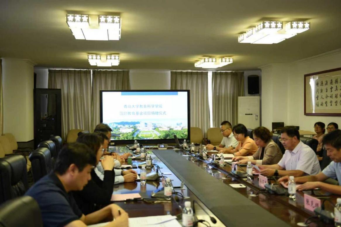 10月11日下午,青岛大学教育科学学院“汉印教育基金”项目捐赠仪式在德润楼301会议室举行。青岛汉印教育咨询有限公司总经理梅豹,青岛大学党委常委、副校长刘恩贤,合作发展处处长、教育发展基金会秘书长王海荣,教育科学学院院长孙百才出席仪式。仪式由教育科学学院党委书记刘清亮主持。