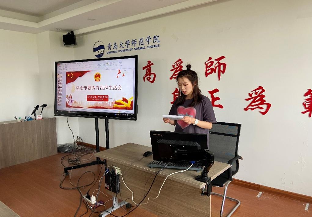 会上,林欢首先代表学生党支部、研究生党支部向全体党员汇报了支部在推动党史学习教育中的工作,重点讲解支部依托学院“翻转党课”特色品牌,遵循“融于日常,抓在经常”的原则,面向全体学生党员及入党积极分子进行的党史学习教育;通过“线上+线下”“自主学习+整体学习”等方式,将党史学习教育融入主题党日、入党积极分子党课培训等活动中,扎实推进支部党史学习教育。她希望支部全体党员应该以党史学习教育为契机,学习党的历史,深刻领会党的光辉历程和伟大精神,以党的百年奋斗经验指导自身学习、工作实践,在党史学习教育中真正做到从历史中汲取力量,从经验中得到启迪。