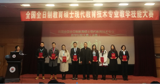 经过积极备战我院共有4名教育技术硕士研究生入围决赛。面对众多重点学校的竞赛者,4名参赛选手不畏强敌,沉着应对,经过两天的激烈角逐,取得了一等奖1名,二等奖2名的好成绩。其中2018级现代教育技术专业研究生迟彩玲荣获全国一等奖,并作为优秀参赛选手在大赛颁奖仪式上进行了教学风采展示;2017级现代教育技术专业研究生王梓仪和2018级现代教育技术专业研究生王蓓蓓荣获全国二等奖;李国建老师、杨进中老师、韩冬老师获得了优秀指导教师奖。