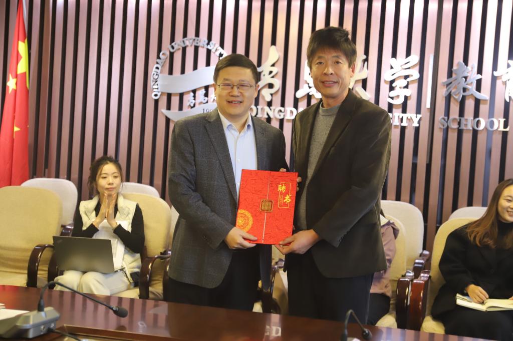 报告会后,学院举行了聘请仪式,孙百才院长代表学院聘请马林刚同志为青岛大学教育科学学院“优秀校友大讲堂”特约讲师并颁发聘书。